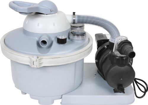 Our Intex complete 1/2 HP, approximate 2450 GPH (gallon per hour) sand filter and pump system by AquaQuik the only sand filter and pump system designed especially for the popular above ground pools, pump such as Intex, General Foam, Aqua Leisure, Sand N Sun, Summer Escapes, Bestway and more. Save money and the environment by not needing to use plastic filter cartridges. This one of a kind sand filter uses a new revolutionary single grid filtering system instead of cumbersome grid arms that require assembly inside of tank. Works with pools up to 16 ft in diameter, smaller and up to 15,000 gallons of water capacity. Ideal filter system for the following size pools: 8' x 30", 10' x 30", 12' x 36", 15' x 36", 15' x 42", 15' x 48", 16' x 42", and 16' x 48". System includes motor with pump, filter tank, base plate, hose fittings, bypass hose and easy to follow instructions. Read more...