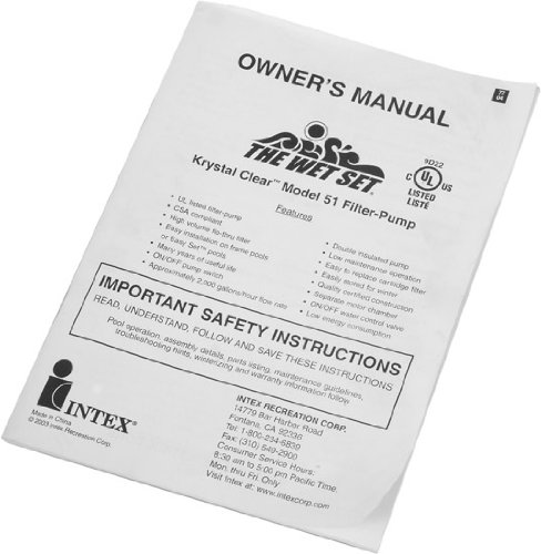 Free Shipping Instruction Manual for 1500 GPH Intex Pool Filter Pump @ Amazon.com